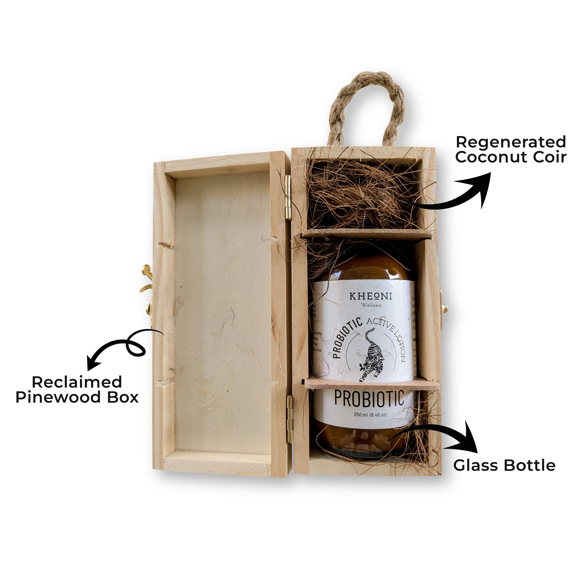 Almost everything with probiotics is regenerative, making it the epitome of sustainability. We ensure that our products are packed in reusable glass bottles, which is encased in reclaimed pinewood boxes with the filling of regenerated coir fibres from temple coconuts. We also refrain from the usage of palm oils and soap nut plantations as they lead to deforestation of green lands, and instead we incorporate naturally extracted essential oils in our probiotic products. We bring to you truly hand-made sustainable luxury!