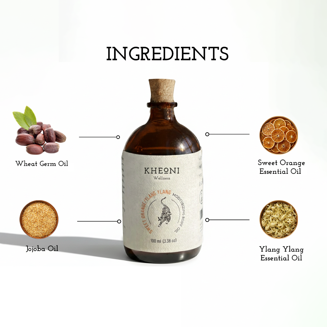 Experience the perfect blend of nourishment and indulgence with our Sweet Orange & Ylang Ylang Moisturizing Body Oil. Enriched with Wheat Germ Oil and Jojoba Oil, this lightweight oil deeply hydrates, softens, and revitalizes your skin, leaving it supple and radiant without any greasy residue.